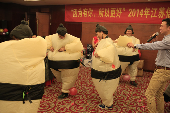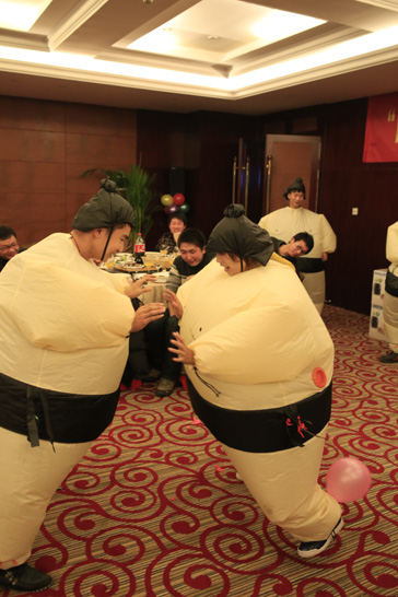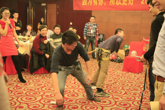 年會期間,公司各部門員工進(jìn)行了專業(yè)的拓展訓(xùn)練。全員被分成三小組來齊心協(xié)力的完成若干游戲任務(wù),輕松游戲的同時,密切了各部門員工間的關(guān)系,也讓員工體會到了強(qiáng)烈的團(tuán)隊(duì)氛圍。