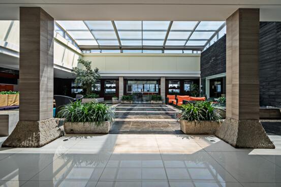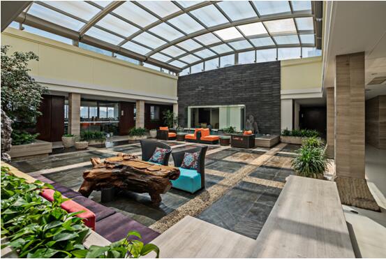利用建筑自身特點,設(shè)計了陽光中庭, 中庭橫向12.3米, 橫向11.3米, 面積達到139平方, 中庭給室內(nèi)帶來了陽光, 帶來了微風, 帶來了活力, 體現(xiàn)了公司的情懷, 人置其中, 身心愉悅, 創(chuàng)造了一個非凡的空間氛圍。